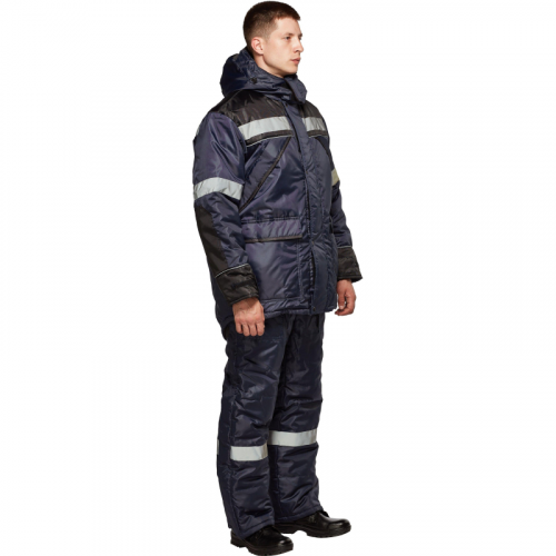 Костюм рабочий зимний мужской Памир-КПК с СОП синий/черный (размер 60-62, рост 170-176). Рекомендован для использования в легкой промышленности. Ткань верха: 'Оксфорд 240' с полиуретановым водонепроницаемым ветрозащитным покрытием (100% полиэстер, плотность 95+10 г/кв.м). Утеплитель из синтепона, плотностью - 450 г/кв.м (основа) 3 слоя по 150 г/кв.м и 300 г/кв.м (руки/ноги) 2 слоя по 150 г/кв.м. Технология изготовления термоскрепленного синтепона (евросинтепона) позволяет использовать данный утеплитель для создания более тонких изделий с сохранением термозащитных свойств. Важными преимуществами утеплителя являются легкость и хорошая пластичность, что улучшает подвижность в костюме. А также исключение миграции волокна через ткани верха и подкладки за счет скрепления слоев. Подкладка: 'Таффета 190' (100% полиэстер, плотность 55+10 гр./кв.м). Защитные свойства: -Защищает от общих производственных загрязнений. -Защищает от пониженных температур. Ветрозащитная планка с застежкой на кнопки и ленту-контакт. В куртке различные многофункциональные карманы. Ветрозащитная юбка на подкладке куртки. Регулировка ширины изделия по низу куртки. Воротник-стойка на флисовой подкладке. Капюшон съемный с подкладкой из флиса. Полукомбинезон с ОТС, с центральной застежкой на тесьму "молния". Различные многофункциональные карманы. Кулиска по талии спинки на полукомбинезоне. В костюме используется светоотражающая полоса 50 мм и светоотражающий кант. размер Цвет на изображении товара в интернет-магазине или в печатном каталоге может отличаться от оригинала из-за особенностей цветопередачи монитора.