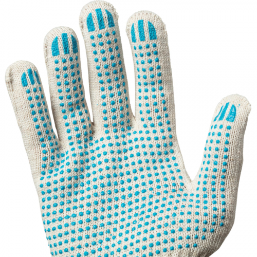 Перчатки защитные эконом хлопковые с ПВХ покрытием белые (точка, 4 нити, 10 класс, универсальный размер, 300 пар в упаковке). Перчатки применяются в различных областях, таких как ЖКХ, общественное питание, строительные и ремонтные работы, склады, сельскохозяйственные работы и другие.Основа перчаток состоит из 60% хлопка и 40% полиэфира с ПВХ покрытием. Перчатки имеют рисунок точка, 4 нити вязки и 10 класс. Манжеты выполнены из резинки. Вес перчаток - 43 г. Размер универсальный, количество в упаковке - 300 пар.Перчатки произведены в соответствии с ТУ и соответствуют требованиям ТР ТС 019/2011. Цвет на изображении товара в интернет-магазине или в печатном каталоге может отличаться от оригинала из-за особенностей цветопередачи монитора.ЗАКОНОДАТЕЛЬНЫЕ И ТЕХНИЧЕСКИЕ ДОКУМЕНТЫ: