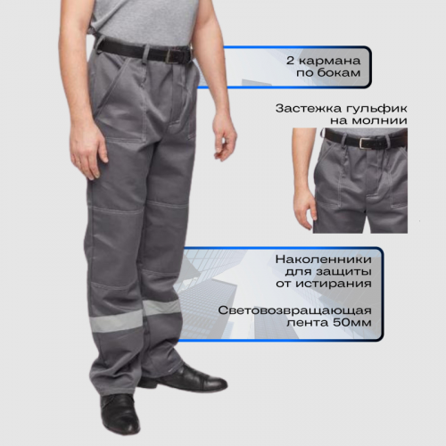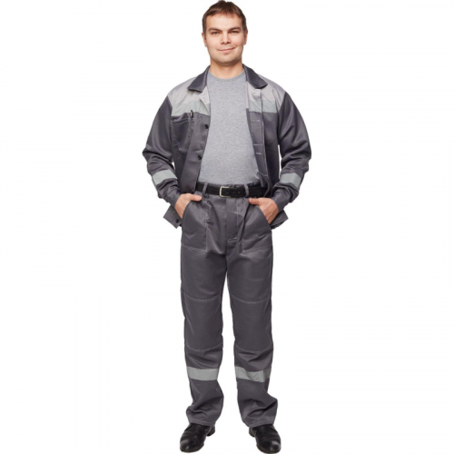 Спецодежда летняя костюм мужской л22-КБР состоит из куртки и брюк (размер 60-62, рост 170-176). Изготовлен из смесовой ткани (80% полиэстер, 20% хлопок) плотностью 210 г/кв.м. Светоотражающая полоса шириной 50 мм размещена на груди, спине, рукавах, а также внизу брюк. Куртка укороченная на поясе, с супатной застежкой на пять петель-пуговиц. Полочка отрезная по линии кокетки, подбор цельнокроеный. Воротник отложной, на куртке три накладных кармана: один верхний нагрудный карман справа с отсрочкой под ручку и два нижних кармана с боковым входом. Рукава с налокотниками и манжетами. Спинка отрезная по линии кокетки. Пояс притачной шириной 4-5 см, с эластичной лентой по бокам. Брюки прямого силуэта, оснащены наколенниками, наличие пяти шлевок. На передней половине брюк расположены два накладных кармана со скошенным входом, гульф (молния). Пояс с пятью шлевками. Весь костюм сшит контрастными нитками белого цвета, двойной строчкой. Костюм предназначен для защиты от общих производственных загрязнений и механических воздействий. ГОСТ 12.4.280-2014, ТР ТС 019/2011. Коллекция рабочей одежды л22 представлена двумя видами комплектов: куртка и полукомбинезон л22-КПК и куртка и брюки Л22-КБР. ЗАКОНОДАТЕЛЬНЫЕ И ТЕХНИЧЕСКИЕ ДОКУМЕНТЫ: