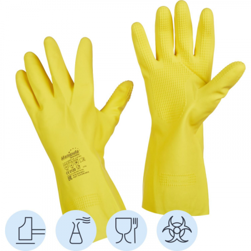 Перчатки Manipula Форсаж (L-F-14) - герметичные латексные перчатки, стойкие к кислотам и щелочам высоких концентраций, органическим растворителям (этанол, ацетон) и растительным жирам. Текстурированная рабочая поверхность обеспечивает отличный захват в жирных средах, а также при работе с замороженными продуктами. Хлорирование поверхности способствует увеличению механической прочности и снижению аллергических реакций на латексные протеины. Плотное хлопковое покрытие внутри перчаток служит для удобства надевания и использования, снижения аллергических реакций на латексные протеины, а также комфортной термоизоляции. Перчатки Manipula Форсаж (L-F-14) одобрены для контакта с пищевыми продуктами. Модель толщиной 0,55 мм имеет запатентованную рабочую поверхность, предназначенную специально для работы в жирных средах. Длина перчаток - 32 см. Соответствуют стандартам: ЕС 1935/2004 , ТР ТС 019/2011 , ГОСТ 12.4.252-2013 , ГОСТ EN 388-2016 , ГОСТ EN ISO 374-1-2016/Type A , ГОСТ ISO 374-5-2016. Защитные свойства ТР ТС: Ми Вн Бм К80 Щ50 Он Нж. Срок хранения: 5 лет. Соответствует регламенту ЕС 1935/2004. Разрешен контакт с пищевыми продуктами. Перчатки являются большемерными, размер перчаток - L (9-9.5). Цвет на изображении товара в интернет-магазине или в печатном каталоге может отличаться от оригинала из-за особенностей цветопередачи монитора.