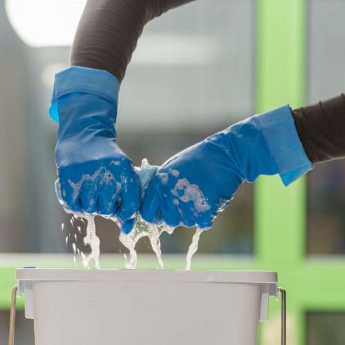 Перчатки Многоцелевые от Vileda Professional из латекса, размер XL, предназначены для профессиональной уборки и другого широкого круга задач, включая уборку помещений и работу с продуктами питания. Защищают от вирусов. Перчатки Многоцелевые эффективно защищают руки во время уборки. Подходят для использования с разведенными моющими средствами и дезинфектантами. Желтые и синие перчатки с ограничением подходят для работы с продуктами питания в столовых, кафе, барах и на кухнях. Применимы для работы на сухих и влажных участках. Особенности и преимущества: Высокая сопротивляемость химикатам и моющим средствам - класс Type B- KLP по стандарту EN ISO 374-1. Износостойкие и долговечные - протестированы на механическую защиту тип 1010Х по стандарту EN 388. Защищают от бактерий, возбудителей грибковых заболеваний и вирусов. Протестированы по стандарту EN 374-5 на герметичность. Соответствуют EAC ТР ТС 019/2011. СЕ Категория III- максимальная защита от рисков по европейским стандартам. Цветовая кодировка для исключения перекрестных загрязнений. Высокая прочность натурального латекса и удобная анатомическая посадка для максимального комфорта. Хлопковое напыление внутри для комфорта во время работы и легкого надевания и снятия перчатки. Плотные и эластичные, приятные на ощупь. Область применения: Идеальны для уборки коммерческой и некоммерческой недвижимости, объектов здравоохранения, производств и HoReCa. Перчатки латексные Многоцелевые - это высококачественный инструмент для эффективной, экологичной и профессиональной уборки. Характеристики: Размер: длина - 29 см, ширина - 12.2 см. Толщина: 0.4 мм по гладкой стороне. Вес: средний вес 1 перчатки - 32 г, пары в упаковке - 61.5 г. (зависит от размера). Состав: латекс (натуральная резина), наполнитель, вулканизирующие агенты, стабилизаторы, оксид цинка, цветовые пигменты, хлопковое напыление, ZDEC (диэтилдитиокарбамат цинка). Ориентация: анатомическая (левая и правая).
