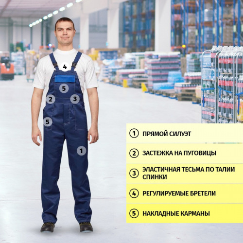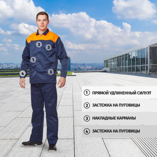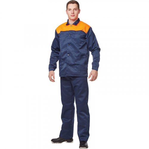 Спецодежда летняя костюм мужской л16-КПК (размер 56-58, рост 170-176) состоит из куртки и полукомбинезона. Изготовлен из смесовой ткани (20% хлопок, 80% полиэфир, плотность 190 г/кв.м.) с водоотталкивающей пропиткой. Полукомбинезон c накладными карманами, гульфиком на пуговицах, эластичной тесьмой по талии спинки и регулируемыми бретелями. Куртка прямого силуэта c объемными накладными карманами и супатнoй застежкой на пуговицы. ГОСТ 12.4.280-2014, ТР ТС 019/2011. Сферы применения: сельское хозяйство, логистика, легкая промышленность, строительство, озеленение. Коллекция спецодежды л16 представлена комплектами куртка-брюки л16-КБР и куртка-полукомбинезон л16-КПК.