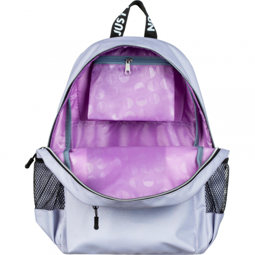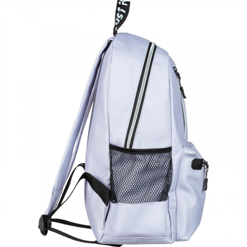 Рюкзак Комус Класс (№1 School) Smart 15 л сиреневыйРюкзак с одним основным отделением на молнии, дополненным накладным карманом и дополнительным вертикальным карманом на молнии. Для удобства хранения также предусмотрены два боковых кармана с сеткой. Внутри рюкзак отделан подкладочной тканью. Тут также есть открытый внутренний карман для мелких вещей. Мягкая уплотнённая спинка и уплотнённые задние лямки обеспечивают комфорт при носке. Сверху есть ручка-петелька.Рюкзак выполнен из перламутровой экокожи, что придаёт ему стильный и элегантный вид. Размер рюкзака - 260x150x400 мм. Рюкзак вмещает предметы формата A4 и весит 0.8 кг. Специального отделения для ноутбука нет.В рамках ребрендинга производится перевод данного артикула с ТМ № 1School на ТМ Комус Класс с сохранением всех потребительских характеристик товара. На переходный период допускается поставка данной продукции в двух вариантах дизайна.