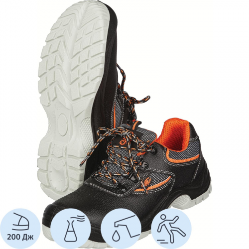 Полуботинки летние рабочие Скорпион Премиум 1302ПК ПУ-ТПУ из натуральной кожи черные с композитным подноском размер 40. Рекомендуются для использования в нефтегазовом комплексе, сельском хозяйстве, строительной отрасли, металлургии, химической промышленности, а также для работы на открытом воздухе и в производственных помещениях.Верх обуви выполнен из натуральной кожи толщиной 2,0-2,2 мм. Мягкий кант и широкая колодка обеспечивают комфорт при носке. Термопластичный подносок для дополнительной защиты. Подошва ПУ-ТПУ двухслойная, где верхний слой выполнен из полиуретана, устойчива к воздействию нефти, нефтепродуктов, масел и бензина. Промежуточный слой из вспененного полиуретана обеспечивает дополнительную теплоизоляцию, снижает вес обуви и нагрузку при ходьбе.Стелька стандартной полноты из нетканого материала. Обувь должна быть выдана по размеру и полноте. После работы обувь нужно очищать от загрязнений, не повреждая материал, и проветривать в помещении. Не рекомендуется чистить обувь органическими растворителями. Регулярно смазывать обувной кремом.Гарантийный срок носки - 70 дней с даты выдачи в эксплуатацию. Обувь предназначена для защиты от общих производственных загрязнений, механических повреждений, ударов, от скольжения, от кислот и щелочей, нефти и нефтепродуктов. Соответствует стандартам ГОСТ 12.4.137-2001, ГОСТ 28507-99, ТР ТС 019/2011.Цвет на изображении товара может отличаться от оригинала из-за особенностей цветопередачи монитора.Законодательные и технические документы