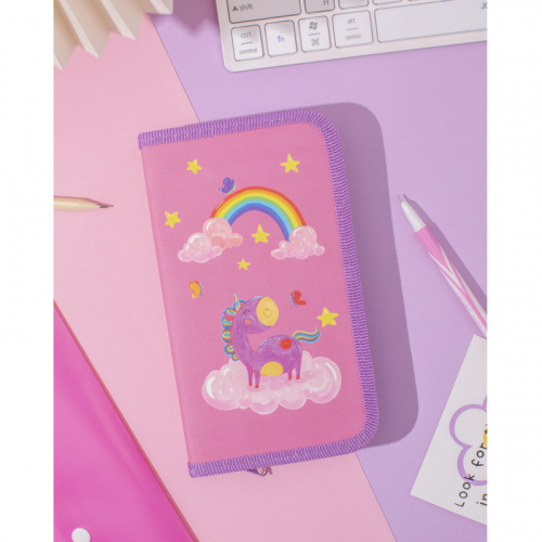 Пенал односекционный для девочек Комус Класс 'Волшебный Единорог' без наполнения. Вместительное отделение для канцелярских принадлежностей застегивается на молнию. Материал - картон с покрытием soft touch. Размер - 190x110 мм. "В рамках ребрендинга производится перевод данного артикула с ТМ №1School на ТМ Комус Класс с сохранением всех потребительских характеристик товара. На переходный период допускается поставка данной продукции в двух вариантах дизайна.