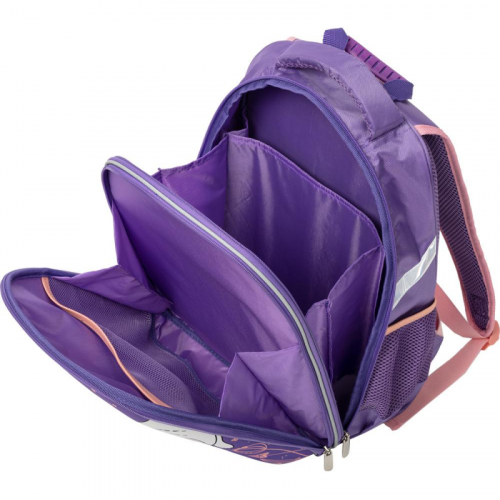 Облегченный вариант ранца отлично подойдет для девочек младших классов. Ранец выполнен из нейлона. Прочная конструкция ранца надежно защищает его содержимое за счет плотного формованного материала. Жесткая спинка с мягкими анатомическими вставками с поддержкой в области поясницы. Широкие удобные лямки из воздухообменного сетчатого материала имеют систему регулировки по росту ребенка, что позволяет добиться наиболее комфортного расположения ранца на спине. Ранец оснащен двумя ручками: одна узкая, чтобы вешать на парту, вторая широкая и мягкая, чтобы удобно носить в руке. Плотное, устойчивое дно на ножках. Ранец имеет два основных отдела на молнии. В основном отделении - гибкая перегородка, предназначенная для удобного хранения книг и тетрадей, и прозрачный карман с вкладышем для расписания уроков. Во втором - сетчатый карман и карман-органайзер. Также на ранце по бокам расположены сетчатые карманы для мелких принадлежностей. Светоотражающие элементы на лицевой стороне, боковых частях ранца, на лямках. Размер: 295x125x390 мм.Цвет подкладки рюкзака может отличаться от варианта, представленного на фото. "В рамках ребрендинга производится перевод данного артикула с ТМ №1School на ТМ Комус Класс с сохранением всех потребительских характеристик товара. На переходный период допускается поставка данной продукции в двух вариантах дизайна.