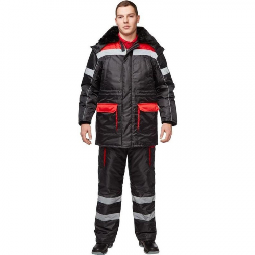 Костюм рабочий зимний мужской з26-КПК с СОП черный/красный (размер 52-54, рост 182-188). Рекомендован для использования в логистике, легкой промышленности, строительстве. Изготовлен из ткани Оксфорд (100% полиэстер), плотность ткани - 85 г/кв.м. Утеплитель - синтепон, плотностью 360 г/кв.м (основа) 3 слоя по 120 г/кв.м и 240 г/кв.м (руки/ноги) 2 слоя по 120 г/кв.м. Технология изготовления термоскрепленного синтепона (евросинтепона) позволяет использовать данный утеплитель для создания более тонких изделий с сохранением термозащитных свойств. Важными преимуществами утеплителя являются легкость и хорошая пластичность, что улучшает подвижность в костюме. А также исключение миграции волокна через ткани верха и подкладки за счет скрепления слоев. Материал подкладки - 100% полиэстер. Защитные свойства: -Защищает от пониженных температур. -Защищает от общих производственных загрязнений. Светоотражающая полоса размещена на груди, спине, рукавах, а также внизу полукомбинезона. На стыке контрастных тканей на рукаве втачан светоотражающий кант. Куртка с центральной застежкой на молнию, ветрозащитным клапаном, съемным утепленным капюшоном и меховым воротником, нижними накладными карманами, верхними потайными карманами, талия куртки регулируется кулиской. Полукомбинезон классического покроя с центральной молнией, двумя нижними накладными карманами. Соответствует стандартам ГОСТ 12. 4. 303-2016. Внимание! Нанесение логотипа методом термопереноса для данного типа ткани не рекомендуется. размер Цвет на изображении товара в интернет-магазине или в печатном каталоге может отличаться от оригинала из-за особенностей цветопередачи монитора.