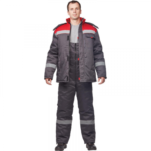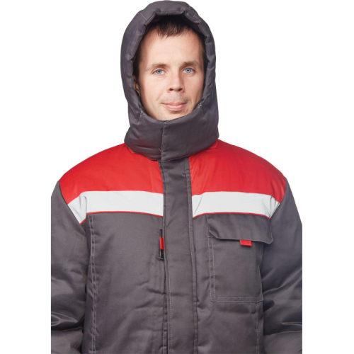 Костюм рабочий зимний мужской з31-КПК с СОП серый/красный (размер 48-50, рост 158-164). Рекомендован для использования в сельском хозяйстве, логистике, легкой промышленности, строительстве, озеленении. Изготовлен из смесовой ткани (65% полиэстер, 35% хлопок), плотность ткани - 210 г/кв.м. Утеплитель из синтепона, плотностью - 360 г/кв.м (основа) 3 слоя по 120 г/кв.м и 240 г/кв.м (руки/ноги) 2 слоя по 120 г/кв.м. Технология изготовления термоскрепленного синтепона (евросинтепона) позволяет использовать данный утеплитель для создания более тонких изделий с сохранением термозащитных свойств. Важными преимуществами утеплителя являются легкость и хорошая пластичность, что улучшает подвижность в костюме. А также исключение миграции волокна через ткани верха и подкладки за счет скрепления слоев. Материал подкладки - 100% полиэстер. Данная модель костюма предназначена для носки при температуре до -18°C. Защитные свойства: -Защищает от общих производственных загрязнений. -Защищает от пониженных температур. Светоотражающая полоса размещена на груди, спине, рукавах, а также внизу полукомбинезона. Куртка с центральной застежкой на молнию, ветрозащитным клапаном, съемным капюшоном, имеет два нижних внутренних кармана и один верхний накладной, трикотажные напульсники. Полукомбинезон классического покроя с центральной молнией, с двумя нижними накладными карманами. Стандарты: ГОСТ 12.4.303-2016. Костюмы, состоящие из куртки и полукомбинезона, из коллекции зимней спецодежды з31 представлены в нескольких цветовых сочетаниях: серый с контрастной отделкой красного цвета и синий, с аналогичной красной отделкой. размер Цвет на изображении товара в интернет-магазине или в печатном каталоге может отличаться от оригинала из-за особенностей цветопередачи монитора.