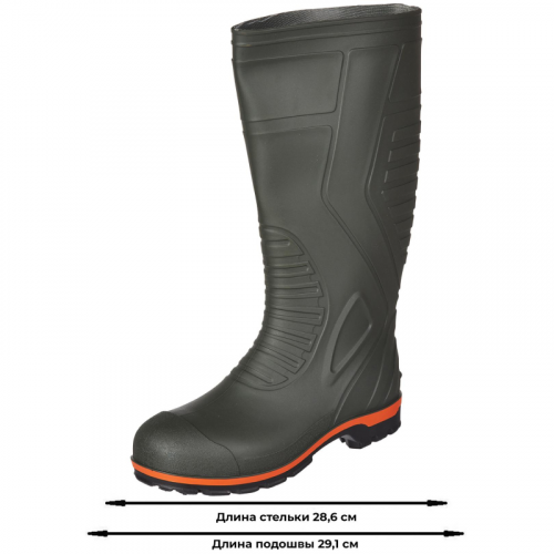 Сапоги рабочие Инспектор ПВХ зеленые с композитным подноском размер 44. Они подходят как для мужчин, так и для женщин. Эти сапоги идеально подходят для строительных работ, а также для использования в лесу и городе в дождливую погоду. Материал верха и подошвы - ПВХ, усиленный в самых изнашиваемых местах для большей долговечности. Сапоги имеют композитный (поликарбонатный) подносок с защитой носочной части от удара в 200 Дж. Метод крепления подошвы - цельнолитой. Высота голенища: 30 см Срок эксплуатации после выдачи обуви составляет 70 дней при соблюдении правил ухода, эксплуатации и хранения. Данная модель предназначена для защиты от кислот и щелочей, нефти и нефтепродуктов, от воздействия влаги, скольжения, от общих производственных загрязнений, механических повреждений и ударов. Соответствует стандартам ГОСТ 12.4.072-79, ГОСТ 12.4.162-85, ГОСТ 12.4.177-89, ТР ТС 019/2011. Цвет на изображении товара в интернет-магазине или в печатном каталоге может отличаться от оригинала из-за особенностей цветопередачи монитора. ЗАКОНОДАТЕЛЬНЫЕ И ТЕХНИЧЕСКИЕ ДОКУМЕНТЫ: