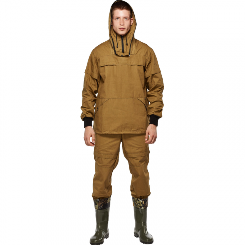 Костюм рабочий летний противоэнцефалитный КБР (размер 48-50, рост 182-188). Костюм рабочий модели противоэнцефалитный КБР выполнен в цвете. Подходит для размера 48-50 и роста 182-188. Костюм противоэнцефалитный палатка - практичная модель специальной экипировки для активного времяпровождения на природе с защитой от насекомых, клещей, гнуса. Костюм отшит из плотной палаточной ткани 100% хлопок, с эффектом ?непромокаемости?, гарантирует гигиеничность и комфорт. В комплекте куртка с капюшоном и сеткой, защищающими от неблагоприятных природных условий, и брюки прямого кроя. Куртка: прямого силуэта, с капюшоном с противомоскитной сеткой. Под кокеткой, по переду и по спинке проходит горизонтальная складка для защиты от клещей. Рукав втачной, с трикотажными манжетами, выше линии локтя на рукаве проходит горизонтальная складка для защиты от клещей. По низу куртки проходит кулиска со шнурком. Капюшон: несъемный, с противомоскитной сеткой, по краю капюшона проходит двухзамковая молния, для пристегивания сетки. По лицевому вырезу регулировка по объему с помощью кулиски со шнурком и концевиками, глубина регулируется в затылочной части хлястиком на полукольцах. Сетка убирается в карман. Брюки: прямые с притачным поясом на резинке, с застежкой на молнию, с шлевками на поясе. По низу брючин проходит кулиса со шнурком. Плотность материала 235 г/к. Отличительные элементы костюма: - в капюшон встроена антимоскитная сетка , которая легко складывается в потайной карман; - регулировка капюшона по объему эластичным шнуром; - по переду и спинке куртки проходит специальная складка-ловушка от клещей; - на рукавах куртки и по низу брючин предусмотрены плотно трикотажные манжеты, которые обеспечат защиту от насекомых; - усилительные элементы в области локтей и колен; - функциональные карманы на куртке и брюках. Карманы: куртка: большой накладной карман с двумя наклонными входами с застежкой на кнопку. Брюки: боковые карманы с клапанами треугольной формы, застежка кармана на кнопку. Усилительные элементы: в области локтей и коленей - усилительные накладки. Состав ткани палаточное полотно (100% хлопок), плотность 235 г/м, ВО (водоотталкивание). Рекомендуется используется в отрасли по озеленению. Соответствует стандартам ГОСТ 12.4.280-2014, ГОСТ12.4.296-2013. ЗАКЛЮЧЕНИЕ МИНПРОМТОРГА РФ МОЖЕТЕ СКАЧАТЬ ЗДЕСЬ: