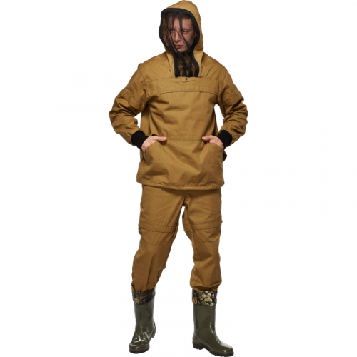 Костюм рабочий летний противоэнцефалитный КБР (размер 60-62, рост 182-188). Костюм рабочий модели противоэнцефалитный КБР выполнен в цвете. Подходит для размера 60-62 и роста 182-188. Костюм противоэнцефалитный палатка - практичная модель специальной экипировки для активного времяпровождения на природе с защитой от насекомых, клещей, гнуса. Костюм отшит из плотной палаточной ткани 100% хлопок, с эффектом ?непромокаемости?, гарантирует гигиеничность и комфорт. В комплекте куртка с капюшоном и сеткой, защищающими от неблагоприятных природных условий, и брюки прямого кроя. Куртка: прямого силуэта, с капюшоном с противомоскитной сеткой. Под кокеткой, по переду и по спинке проходит горизонтальная складка для защиты от клещей. Рукав втачной, с трикотажными манжетами, выше линии локтя на рукаве проходит горизонтальная складка для защиты от клещей. По низу куртки проходит кулиска со шнурком. Капюшон: несъемный, с противомоскитной сеткой, по краю капюшона проходит двухзамковая молния, для пристегивания сетки. По лицевому вырезу регулировка по объему с помощью кулиски со шнурком и концевиками, глубина регулируется в затылочной части хлястиком на полукольцах. Сетка убирается в карман. Брюки: прямые с притачным поясом на резинке, с застежкой на молнию, с шлевками на поясе. По низу брючин проходит кулиса со шнурком. Плотность материала 235 г/к. Отличительные элементы костюма: - в капюшон встроена антимоскитная сетка , которая легко складывается в потайной карман; - регулировка капюшона по объему эластичным шнуром; - по переду и спинке куртки проходит специальная складка-ловушка от клещей; - на рукавах куртки и по низу брючин предусмотрены плотно трикотажные манжеты, которые обеспечат защиту от насекомых; - усилительные элементы в области локтей и колен; - функциональные карманы на куртке и брюках. Карманы: куртка: большой накладной карман с двумя наклонными входами с застежкой на кнопку. Брюки: боковые карманы с клапанами треугольной формы, застежка кармана на кнопку. Усилительные элементы: в области локтей и коленей - усилительные накладки. Состав ткани палаточное полотно (100% хлопок), плотность 235 г/м, ВО (водоотталкивание). Рекомендуется используется в отрасли по озеленению. Соответствует стандартам ГОСТ 12.4.280-2014, ГОСТ12.4.296-2013. ЗАКЛЮЧЕНИЕ МИНПРОМТОРГА РФ МОЖЕТЕ СКАЧАТЬ ЗДЕСЬ: