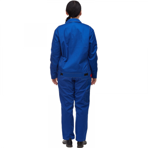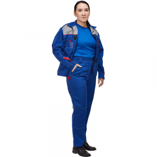 Костюм рабочий летний женский л10-КБР васильковый/серый/красный (размер 40-42, рост 170-176). Костюм рабочий летний модели л10-КБР для женщин. Состоит из куртки и брюк. Размер 40-52, рост 170-176. Выполнен со светло-серыми и красными вставками. Изготовлен из смесовой ткани с отделкой ВО (65% полиэстер, 35% хлопок), плотность ткани - 240 г/кв.м. За счет оптимального соотношения хлопка и полиэфирных волокон дают высокие эксплуатационные характеристики, не мнется, костюм держит свою первоначальную форму даже после многократных стирок, не требует глажки, износостойкий. Благодаря матовой поверхности ткани, одежда выглядит презентабельно и аккуратно. Куртка с застежкой на молнию и контактную ленту. Многофункциональные карманы, специальный карман для телефона, окошко для бейджика. На спине куртки складки для свободы движения. Рукава с усилительными налокотниками, защищающими от истирания. Ширина пояса куртки регулируется патой.Брюки с резинкой на поясе, многофункциональными карманами и специальным карманом для инструментов, с усилительными наколенниками. Костюм обеспечивает защиту от общих производственных загрязнений, от механических повреждений (истирания). Костюм с водоотталкивающей отделкой, предназначен для защиты от общих производственных загрязнений, защиты от истирания. Рекомендуется использовать в агропромышленных комплексах, жилищно-коммунальном хозяйстве, организации торговли, бытовом обслуживании, гостиничном сервисе, сервисных службах, клининговых службах, а так же медицинскому персоналу организаций здравоохранения. Соответствует стандартам: ТР ТС 019/2011, ГОСТ 12.4.280-2014. Законодательные и технические документы