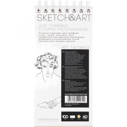 Скетчбук Sketch&Art 105х220мм 60л пухлая 100г на гребне 1-60-564/03