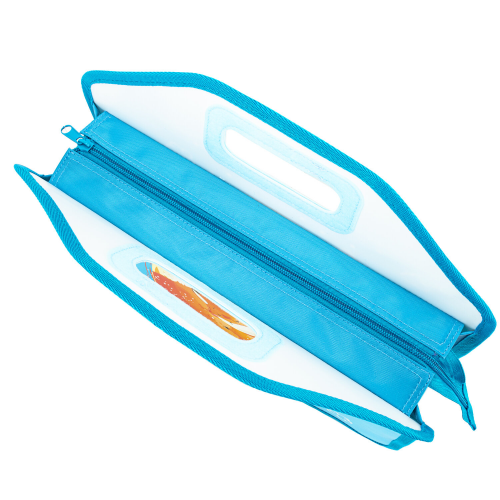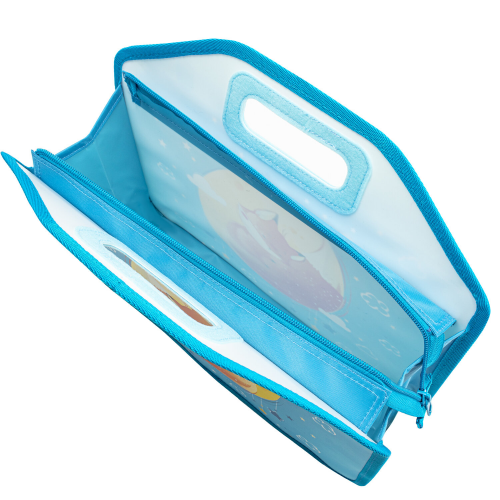 Практичная широкая папка-сумка на молнии защитит содержимое от замятий и повреждений. Яркая и четкая печать дизайна с двух сторон папки. Застегивается на молнию по верхнему краю. Двойные фетровые ручки способствуют комфортной переноске при большой нагрузке. Прорезиненный материал на дне и по бокам папки создает водонепроницаемый эффект. Широкий формат товара позволяет разместить большое количество канцелярских принадлежностей для творчества внутри, в том числе стакан-непроливайку и бумажные принадлежности формата А4. Размер – 34х30 см, ширина – 10 см.