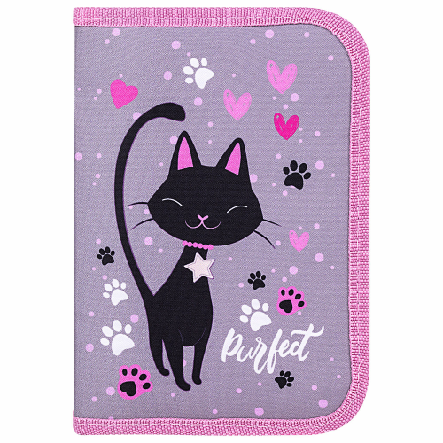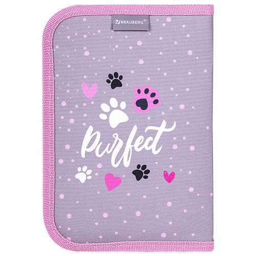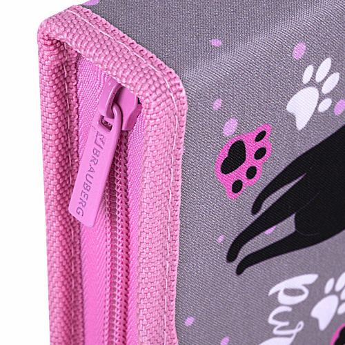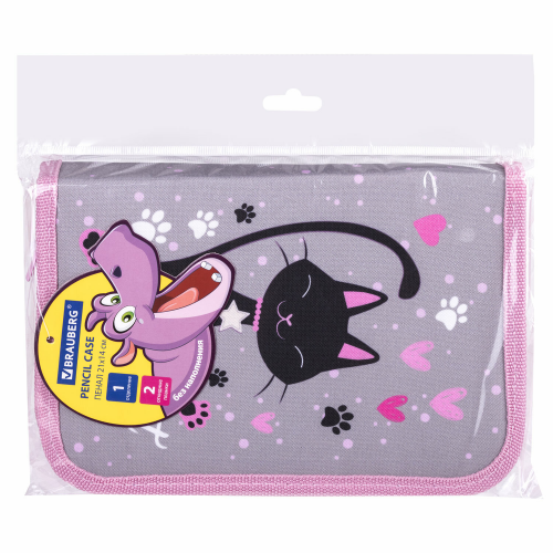 Пенал BRAUBERG, 1 отделение, 2 откидные планки, полиэстер, 21х14 см, "Elegant cat", 271514