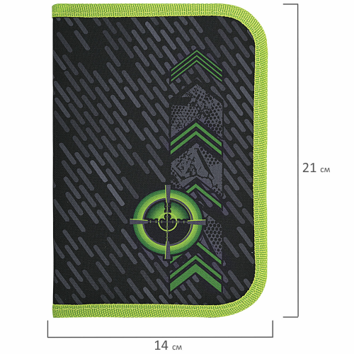Пенал BRAUBERG, 1 отделение, 2 откидные планки, полиэстер, 21х14 см, "Gunsight", 271517