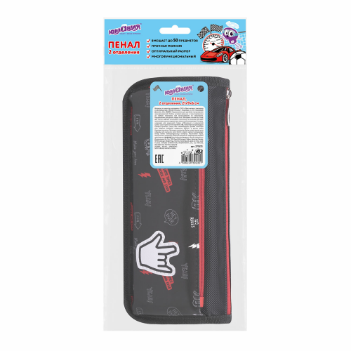 Пенал мягкий ЮНЛАНДИЯ выполнен из прочного полиэстера с 3D элементами из экокожи. Размер пенала 21х6х9 см. Имеет два вместительных отделения. Застегивается на молнию с брендированными металлическим бегунками.