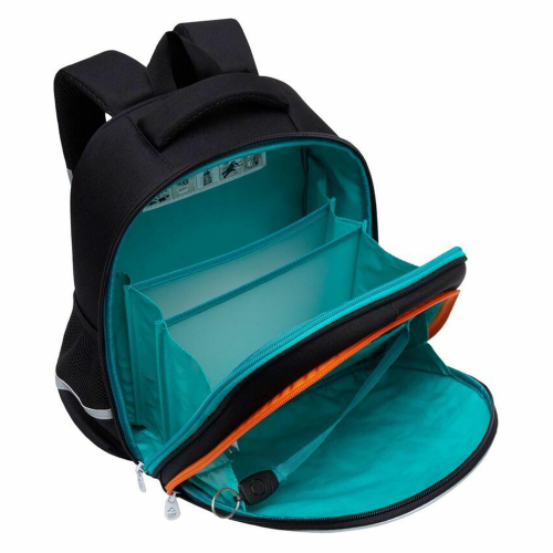 Основное отделение разбито на три отсека: для книг, тетрадей и папок А4. В дополнительное помещается сменка (есть три кармашка для мелочей). В боковых можно носить воду или перекус. У рюкзака формованная лицевая часть, жесткая анатомическая спинка и жесткое дно на ножках. Содержимое надежно защищено. Такая конструкция равномерно распределяет нагрузку на спину. Чтобы не уставали руки и плечи, ранец оснащен широкими лямками и нагрудной стяжкой со свитком. Для безопасности в темное время суток со всех сторон нанесены светоотражающие элементы. За счет водо- и грязеотталкивающей пропитки ранец долго остается как новый. Если он все же чем-то испачкался, рекомендуется ручная стирка в холодной воде.