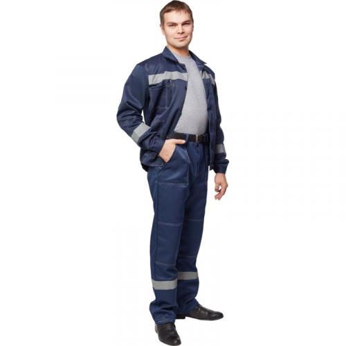 Спецодежда костюм мужской л22-КБР состоит из куртки и брюк (размер 56-58, рост 194-200). Изготовлен из смесовой ткани (80% полиэстер, 20% хлопок) плотностью 210 г/кв.м. Светоотражающая полоса шириной 50 мм размещена на груди, спине, рукавах, а также внизу брюк. Куртка укороченная на поясе, с супатной застежкой на пять петель-пуговиц. Полочка отрезная по линии кокетки, подбор цельнокроеный. Воротник отложной, на куртке три накладных кармана: один верхний нагрудный карман справа с отсрочкой под ручку и два нижних кармана с боковым входом. Рукава с налокотниками и манжетами. Спинка отрезная по линии кокетки. Пояс притачной шириной 4-5 см, с эластичной лентой по бокам. Брюки прямого силуэта, оснащены наколенниками, наличие пяти шлевок. На передней половине брюк расположены два накладных кармана со скошенным входом, гульф (молния). Пояс с пятью шлевками. Весь костюм сшит контрастными нитками белого цвета, двойной строчкой. Костюм предназначен для защиты от общих производственных загрязнений и механических воздействий. ГОСТ 12.4.280-2014, ТР ТС 019/2011. Коллекция рабочей одежды л22 представлена двумя видами комплектов: куртка и полукомбинезон л22-КПК и куртка и брюки Л22-КБР. Соответствует базовым характеристикам, заявленному ГОСТ и ТР ТС. Длительность эксплуатиции СИЗ зависит от правильного ношения, хранения, условий работы и норм выдачи, установленных в организации и на предприятии. ЗАКОНОДАТЕЛЬНЫЕ И ТЕХНИЧЕСКИЕ ДОКУМЕНТЫ: