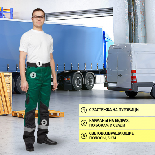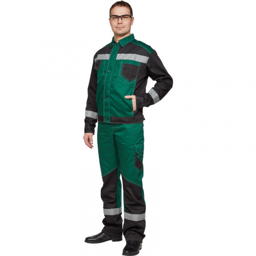 Спецодежда летняя костюм мужской л21-КБР состоит из куртки и брюк (размер 52-54, рост 182-188). Изготовлен из смесовой ткани (65% - полиэстер, 35% - хлопок) плотностью 240 г/кв.м с водоотталкивающей пропиткой (ВО). Светоотражающая полоса шириной 50 мм размещена на груди, спине, рукавах, а также внизу брюк. Куртка c застежкой на молнию и кнопки. На куртке два верхних накладных кармана. Рукава с налокотниками и манжетами. Ширина пояса куртки регулируется кнопками. Брюки прямого силуэта с застежкой на пуговицы. На передней половине брюк расположены два накладных кармана со скошенным входом. На брюках сзади 2 накладных кармана, один из которых на кнопке, а также боковой накладной карман на кнопке. Весь костюм сшит контрастными нитками белого цвета, двойной строчкой. Костюм предназначен для защиты от общих производственных загрязнений и от механических повреждений, от истирания. ГОСТ 12.4.280-2014, ТР ТС 019/2011. Сферы применения: сельское хозяйство, логистика, легкая промышленность, строительство, тяжелая промышленность.Коллекция рабочей одежды л21 представлена двумя видами комплектов: куртка и полукомбинезон л21-КПК и куртка и брюки Л21-КБР.ЗАКОНОДАТЕЛЬНЫЕ И ТЕХНИЧЕСКИЕ ДОКУМЕНТЫ: