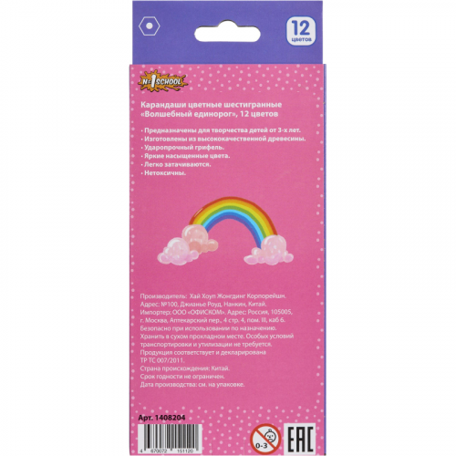 Карандаши цветные Комус Класс Волшебный Единорог 12 карандашей 12 цветов шестигранные Набор цветных карандашей №1School Волшебный Единорог предназначен для рисования на бумаге. Применяется детьми от 3 лет и старше. В наборе 12 цветов. Карандаши с шестигранным деревянным корпусом. Длина корпуса: 175 мм. Диаметр грифеля: 2.65 мм. Упакованы в картонную коробку с европодвесом размером 90x8x180 мм. Карандаши изготовлены из качественной древесины, ударопрочные и легко затачиваются без заусенцев. Шестигранная форма делает карандаш устойчивым на поверхности стола. Нетоксичны. Грифели классические, легко затачиваются. Набор подходит для развития мелкой моторики и правильного захвата пишущих принадлежностей. Идеально для учебных занятий и творчества.