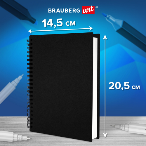 Скетчбук имеет размер 145х205 мм и содержит 40 каландрированных листов бумаги производства ГОЗНАК плотностью 200 г/м2. Данная бумага идеально подходят для рисования маркерами и фломастерами, не позволяя им просачиваться на следующий лист. Не съедает цвет, оставляя яркие цвета неизменными, удобно скреплена спиралью, что позволяет переворачивать её на 360 градусов. Твердая обложка позволяет делать зарисовки и наброски "на весу", а черная минималистичная обложка может быть декорирована яркими наклейками и стикерами.