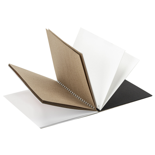 Изделие имеет размер 145х205 мм и содержит 60 листов. Твердая обложка с модным дизайном и жесткая задняя подложка позволяет делать зарисовки и наброски "на весу". Внутренний блок представлен сразу четырьмя видами бумаги: акварельная (10 листов плотностью 200 г/м2), белая (20 листов плотностью 120 г/м2), крафтовая (20 листов плотностью 80 г/м2) и черная (10 листов плотностью 120 г/м2). Несколько видов бумаги, из которых состоит внутренний блок, позволят юному художнику попробовать сразу несколько техник рисования в одном скетчбуке. Листы удобно скреплены спиралью, что позволяет переворачивать их на 180 градусов.