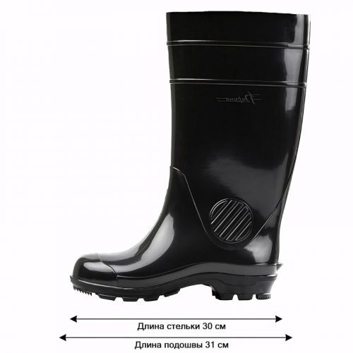 Сапоги рабочие мужские Дарина Орел ПВХ черные размер 46 (Д21-КЩС). Эти специальные рабочие сапоги выполнены из ПВХ и предназначены для защиты ног от различных опасностей. Материал верха и подошвы изготовлены из ПВХ, с цельнолитым методом крепления подошвы, что гарантирует 100% защиту от попадания влаги. Высота голенища: 38.2 см. Температурный режим эксплуатации - до 0 °C. Обувь подходит для демисезонного и летнего использования. ПВХ не трескается со временем, не теряет форму и эластичность. Каблук амортизирует нагрузку с пятки, а рельефный протектор обеспечивает надежное сцепление с скользкими поверхностями и защиту от камней и неровностей. Обладают защитой от: - нефти, нефтепродуктов (Нс); - нефтяных масел и продуктов тяжелых фракций (Нм); - растительных и животных масел и жиров (Нж); - растворов кислот концентрацией до 80% (К80); - растворов щелочей концентрацией до 50% (Щ50); - воды (В); - общих производственных загрязнений (З); - механических воздействий (истирания (Ми)); - скольжения по мокрым поверхностям (См); - зажиренным поверхностям (Сж). Соответствуют стандартам ТР ТС 019/2011, ГОСТ 5375-79-1980, ГОСТ 12.4.162-85-1986, ГОСТ 12.4.072-79-1980, ГОСТ 12.4.033-95-2019. ЗАКОНОДАТЕЛЬНЫЕ И ТЕХНИЧЕСКИЕ ДОКУМЕНТЫ: