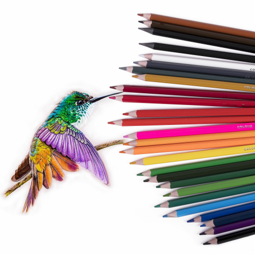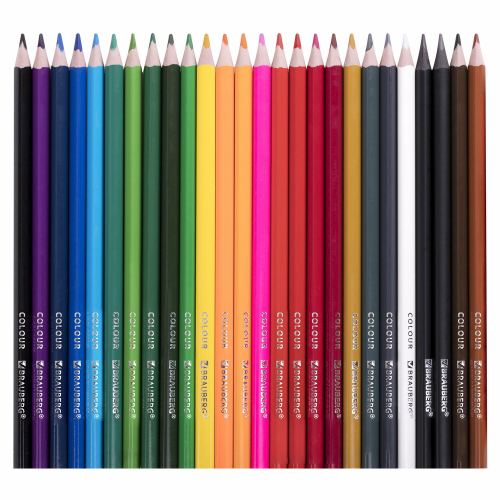 Набор состоит из 24 цветов: черный, темно-синий, синий, голубой, салатовый, зеленый, темно-зеленый, болотный, серо-зеленый, желтый, оранжевый, темно-оранжевый, персиковый, фуксия, розовый, красный, темно-красный, бордовый, песочный, серый, светло-серый, фиолетовый, темно-коричневый, коричневый + 2 чернографитных карандаша в подарок!