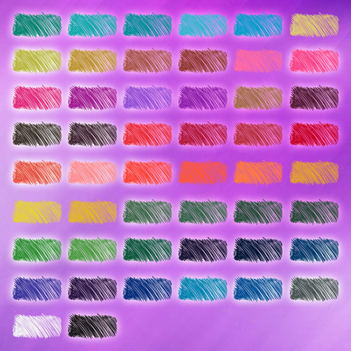 Набор состоит из 50 ярких и насыщенных цветов, которые позволят придать изображению практически любой желаемый оттенок.