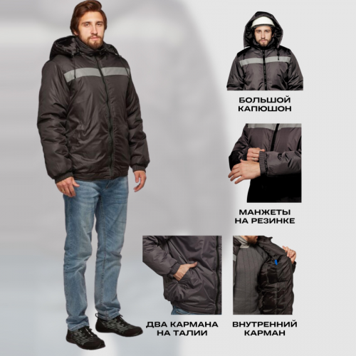 Куртка рабочая зимняя муж бомбер черная (р.56-58)182-188