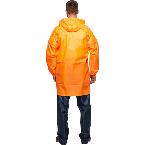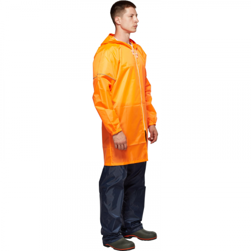 Плащ влагозащитный Ивент Блик полиэстеровый на молнии оранжевый со светоотражающим кантом (размер 44-46, S, 170-176). Плащ влагозащитный Ивент Блик выполнен из флуоресцентно-желтой ткани и предназначен для обеспечения безопасности в условиях плохой видимости. Он защищает от ветра, дождя и снега, а также от общих загрязнений во время работы и активного отдыха на открытом воздухе. Плащ идеально подходит для использования в условиях повышенных требований к видимости. Материал: основная ткань - влагозащитная флуоресцентно-желтая ткань с высокой видимостью. Плотность ткани 60+5 г/кв.м. Капюшон двухшовный с кулисой для регулировки, шнур с фиксатором. Рукава цельнокроеные с притачными манжетами. В швах капюшона и манжет - светоотражающие канты, обеспечивающие дополнительную безопасность. Плащ прямого силуэта, застегивается на молнию. Капюшон съемный, регулируемый, обеспечивающий защиту от дождя и ветра.