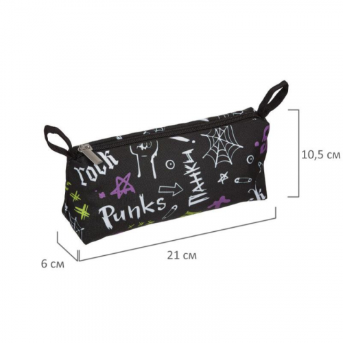 Пенал-косметичка предназначен для хранения школьных принадлежностей. Выполнен в трендовом дизайне Панк из прочного полиэстера с подкладом внутри. Размер: 210x60x105 мм. Поставляется в прозрачном полиэтиленовом пакете. В рамках ребрендинга производится перевод данного артикула с ТМ №1School на ТМ Комус Класс с сохранением всех потребительских характеристик товара. На переходный период допускается поставка данной продукции в двух вариантах дизайна.