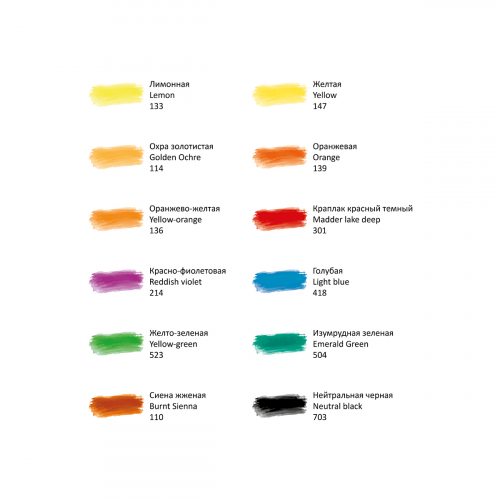 Акварельные краски серии «Студия» изготовлены на основе гуммиарабика. Полусухая акварель идеально подходит для начинающих художников и студентов художественных училищ. Краски легко набираются из кюветы, прекрасно размываются и смешиваются между собой. В наборе 12 цветов, кювета 2,6 мл.