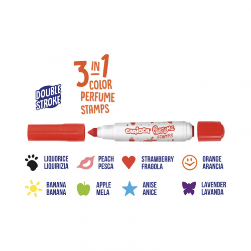 Фломастеры-штампы двусторонние MAXI с ароматизированными смываемыми чернилами. Используемые ароматизаторы безопасны для здоровья ребенка, не вызывают аллергических реакций. Конический тип наконечника плотно зафиксирован в корпусе. Вентилируемый колпачок.