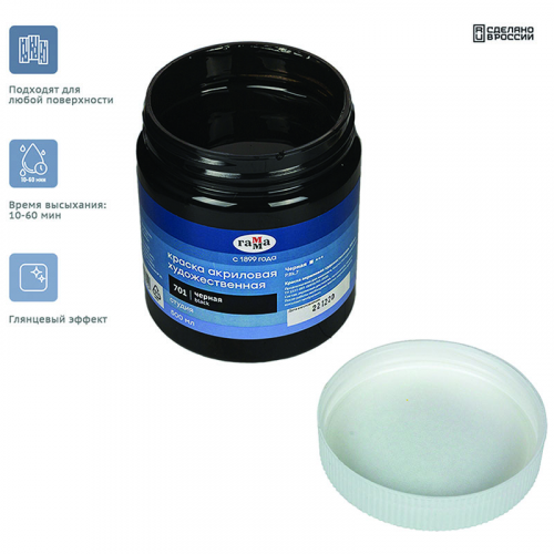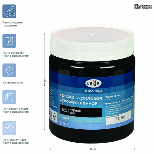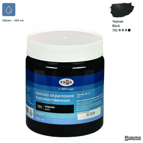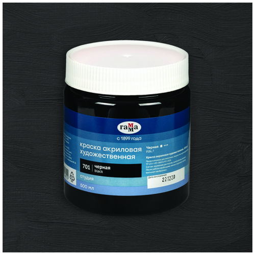 Краска акриловая художественная Гамма "Студия", 500мл, банка, черная