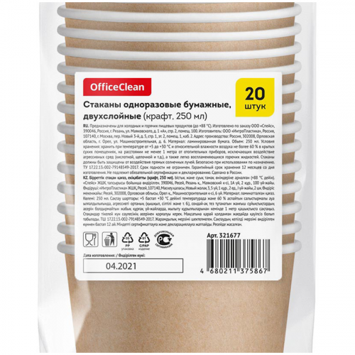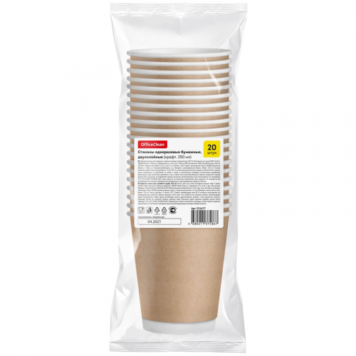 Стаканы одноразовые OfficeClean объемом 250 мл изготовлены из двухслойной ламинированной бумаги в дизайне крафт. Благодаря использованию в производстве натуральных материалов, стаканы являются безопасными для здоровья человека и его окружения. Они имеют достаточную плотность, чтобы дольше сохранить напиток горячим или холодным, при этом выдерживать температуру горячего кофе, шоколада или чая, не деформируются и не жгут руки.