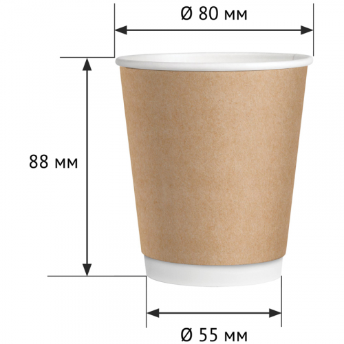 Максимальная температура использования +88° С. Верхний диаметр стакана - 80 мм, нижний диаметр стакана - 55 мм, высота - 88 мм. К данному виду стаканов подходят одноразовые крышки (код 306584).