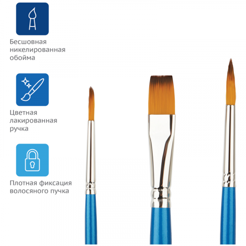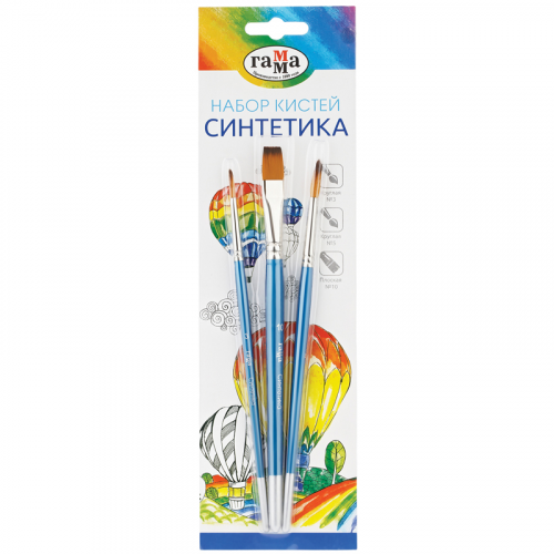Набор кистей Гамма "Классические" 3шт., синтетика, круглые № 3, 5, плоская № 10, блистер, европодвес