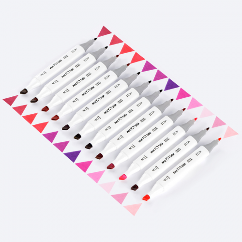 Набор двусторонних маркеров для скетчинга Meshu - идеальный выбор для художников, дизайнеров, иллюстраторов и любителей скетчинга, подходят для создания анимэ и манги. Эргономичный трехгранный корпус удобно лежит в руке и позволяет эффективно прорабатывать мелкие детали рисунка. Чернила на спиртовой основе - быстро высыхают, водостойкие, нетоксичны и не портят поверхность бумаги. Маркеры обладают пулевидным (2мм) и скошенным (6 мм) наконечниками, что позволяет прорабатывать как мелкие детали рисунка. так и закрашивать большие области.