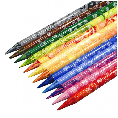 Карандаши цельнографитные Koh-i-Noor Progresso Magic – это многоцветные карандаши, грифели которых не просто состоят из трех цветов, они еще необычнее. Карандаши состоят только из толстого грифеля, покрытого лаком. Точатся обычными точилками, грифель яркий и мягкий. Линия на бумаге меняет свой цвет в процессе рисования и раскрашивания, что позволяет получать совершенно неожиданные и никогда не повторяющиеся рисунки. Карандаши мягкие и не требуют сильного надавливания при рисовании, обладают высокой укрывистостью. Используя Koh-i-Noor Progresso Magic можно получить настоящие шедевры, карандаши развивают креативное мышление и фантазию.