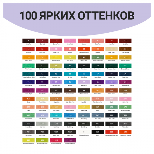 Набор двусторонних маркеров для скетчинга MESHU – идеальный выбор для художников, дизайнеров, иллюстраторов и любителей скетчинга. В наборе 100 основных цветов. Маркеры подходят для создания аниме и манги. Маркеры обладают пулевидным (2мм) и скошенным (6 мм) наконечниками, что позволяет прорабатывать как мелкие детали рисунка, так и закрашивать большие области. Толщина линии может варьироваться от 1 до 6 мм. Длина письма может достигать до 350 метров.
