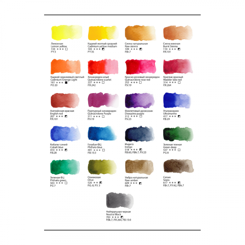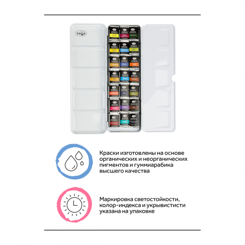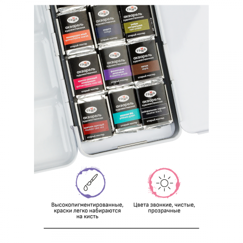 Акварель художественная Гамма "Старый Мастер", 21цв*2.6мл, кюветы, метал. коробка