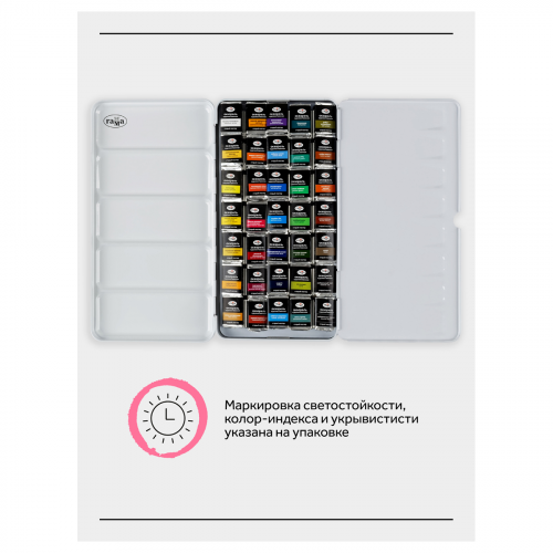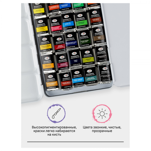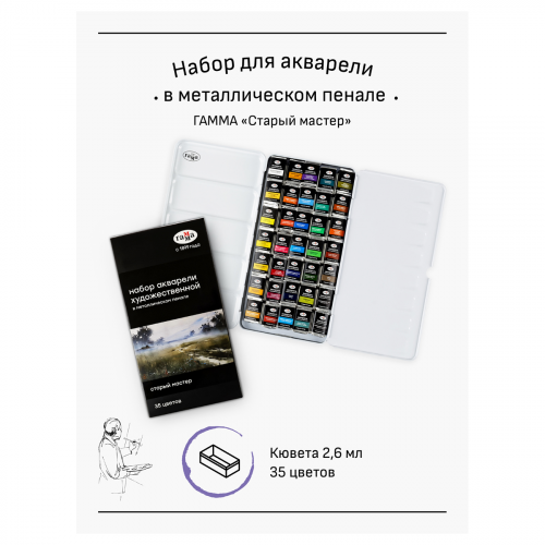 Акварель художественная Гамма "Старый Мастер", 35цв*2.6мл, кюветы, метал. коробка