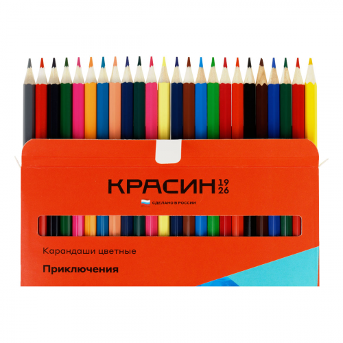 Набор цветных карандашей «Красин» серии «Приключения» – отличный помощник на уроках рисования и прекрасный инструмент для детского творчества. В наборе 24 цвета. Корпус карандашей классической шестигранной формы изготовлен из натуральной древесины липы. При производстве используется специальная технология склейки, которая увеличивает прочность и надежность заклейки стержня в карандаше, предохраняет его от повреждений при падении. Цветные карандаши легко и ровно затачиваются, не ломаются и не крошатся во время заточки и рисования. Благодаря высококачественному грифелю класса А карандаши мягко рисуют. Рисунки получаются яркими, насыщенными и устойчивы к выцветанию. Карандаши уже заточены и готовы к использованию. Они имеют диаметр 7 мм и длину 177 мм. Упакованы в плотную матовую картонную коробку с европодвесом. Яркая картинка на тему мечтательных путешествий вдохновит на творчество детей школьного и дошкольного возраста.