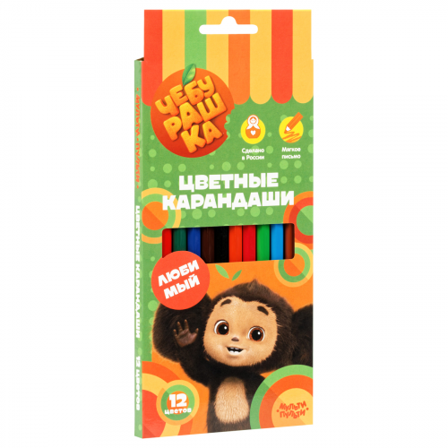 Карандаши цветные «Мульти-Пульти» серии «Чебурашка» произведены в России на новейшем современном оборудовании с применением передовых технологий. В наборе 12 цветов. Диаметр грифеля составляет 3 мм, что увеличивает срок службы карандаша.