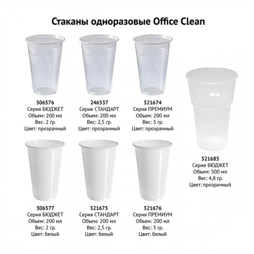Стаканы одноразовые OfficeClean 200мл, набор 4000шт.(40уп. по 100шт.), бюджет, ПП, прозрач, хол/гор