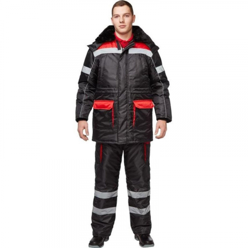 Костюм рабочий зимний мужской з26-КПК с СОП черный/красный (размер 56-58, рост 170-176). Рекомендован для использования в логистике, легкой промышленности, строительстве. Изготовлен из ткани Оксфорд (100% полиэстер), плотность ткани - 85 г/кв.м. Утеплитель - синтепон, плотностью 360 г/кв.м (основа) 3 слоя по 120 г/кв.м и 240 г/кв.м (руки/ноги) 2 слоя по 120 г/кв.м. Технология изготовления термоскрепленного синтепона (евросинтепона) позволяет использовать данный утеплитель для создания более тонких изделий с сохранением термозащитных свойств. Важными преимуществами утеплителя являются легкость и хорошая пластичность, что улучшает подвижность в костюме. А также исключение миграции волокна через ткани верха и подкладки за счет скрепления слоев. Материал подкладки - 100% полиэстер. Защитные свойства: -Защищает от пониженных температур. -Защищает от общих производственных загрязнений. Светоотражающая полоса размещена на груди, спине, рукавах, а также внизу полукомбинезона. На стыке контрастных тканей на рукаве втачан светоотражающий кант. Куртка с центральной застежкой на молнию, ветрозащитным клапаном, съемным утепленным капюшоном и меховым воротником, нижними накладными карманами, верхними потайными карманами, талия куртки регулируется кулиской. Полукомбинезон классического покроя с центральной молнией, двумя нижними накладными карманами. Соответствует стандартам ГОСТ 12. 4. 303-2016. Внимание! Нанесение логотипа методом термопереноса для данного типа ткани не рекомендуется. размер Цвет на изображении товара в интернет-магазине или в печатном каталоге может отличаться от оригинала из-за особенностей цветопередачи монитора.