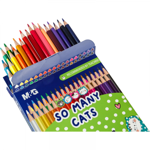 Карандаши цветные M&G So Many Cats 36 карандашей 36 цветов трёхгранные Карандаши цветные So Many Cats предназначены для рисования, письма и раскрашивания на бумаге. Применяются детьми, студентами и взрослыми для творчества. Рекомендованный возраст от 3 лет. Набор содержит 36 цветов. Материал корпуса - древесина. Корпус трёхгранный, диаметр: 7 мм. Длина корпуса: 175 мм. Диаметр грифеля: 3 мм. Грифель разноцветный. Карандаши заточены. Форма корпуса способствует правильному захвату пальцами. Упакованы в картонную коробку с европодвесом. Размер упаковки: 128x8x205 мм.