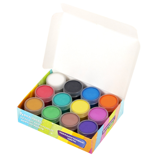 Краски акриловые ПЕРЛАМУТРОВЫЕ для рисования и творчества 12 цветов по 20 мл BRAUBERG HOBBY, 192436
